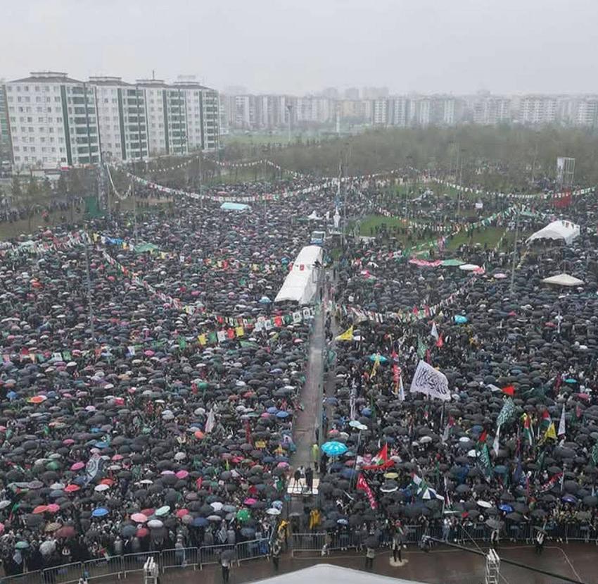 Başta Diyarbakır olmak üzere Bingöl, Batman, Mardin’den binlerce vatandaşlar, yağışlı havaya rağmen etkinlik alanını doldurdu. Programa, HÜDA PAR Genel Başkanı Zekeriya Yapıcıoğlu, HÜDA PAR Batman Milletvekili Sekan Ramanlı, bazı siyasi parti ile sivil toplum kuruluşlarının temsilcileri, kanaat önderleri, Filistin, Afganistan, Suriye, Irak, Sudan, Doğu Türkistan ve Bangladeş’ten katılımcılar ve vatandaşlar katıldı. |