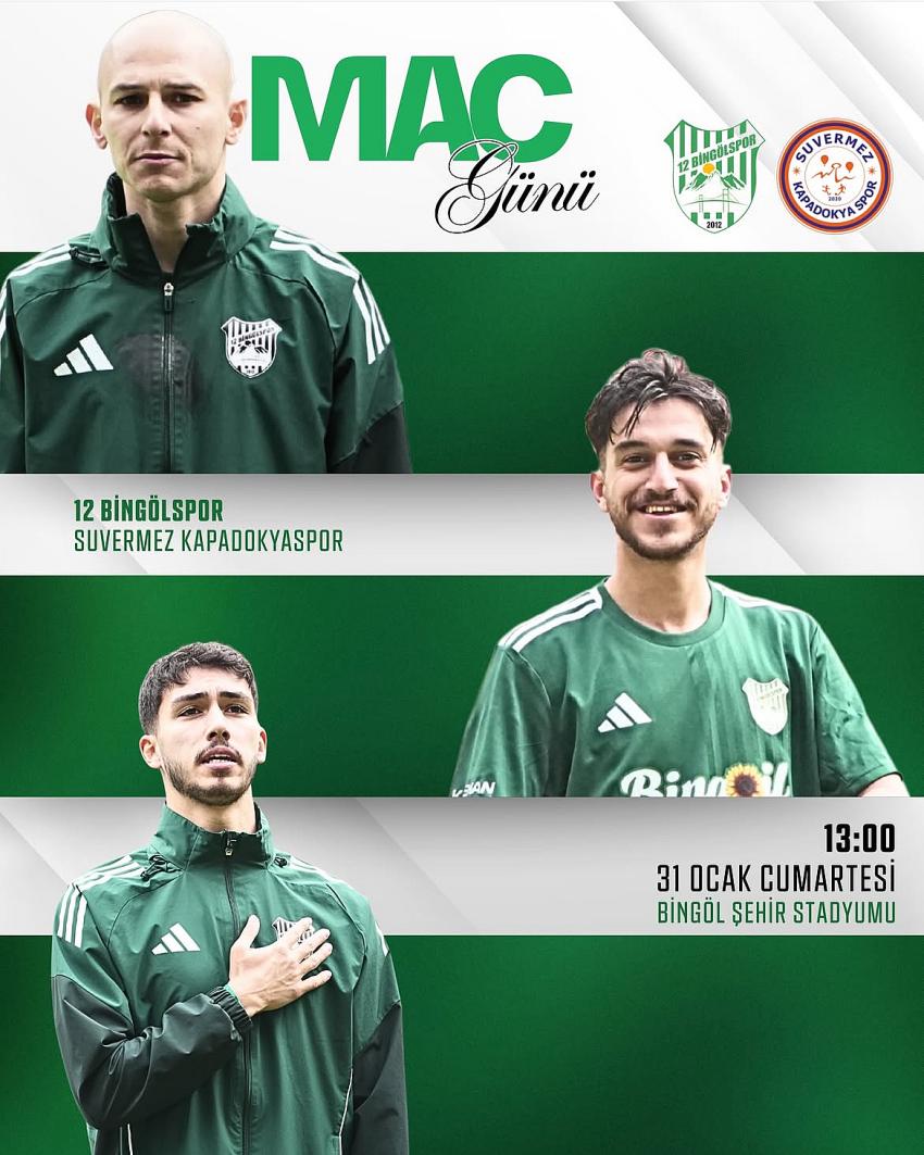 YeÅŸil beyazlı temsilcimiz 12 Bingölspor, 23 Mart Pazar günü saat 13:00’te Åžehir Stadyu...