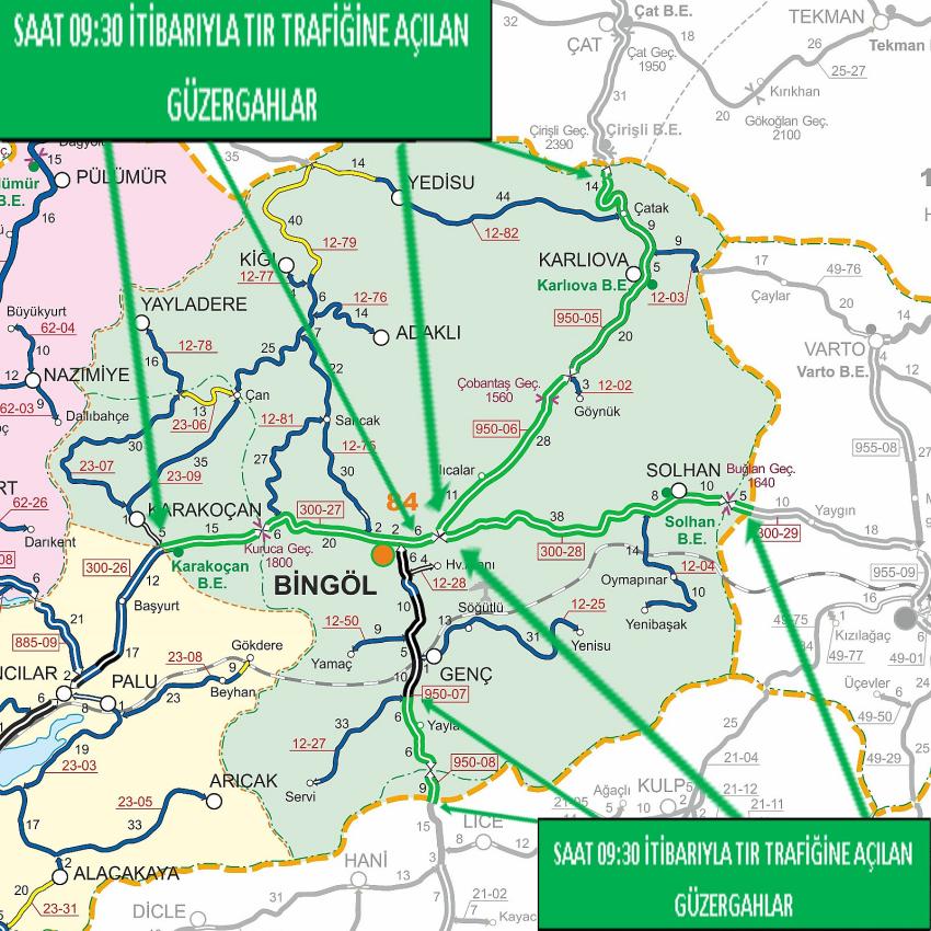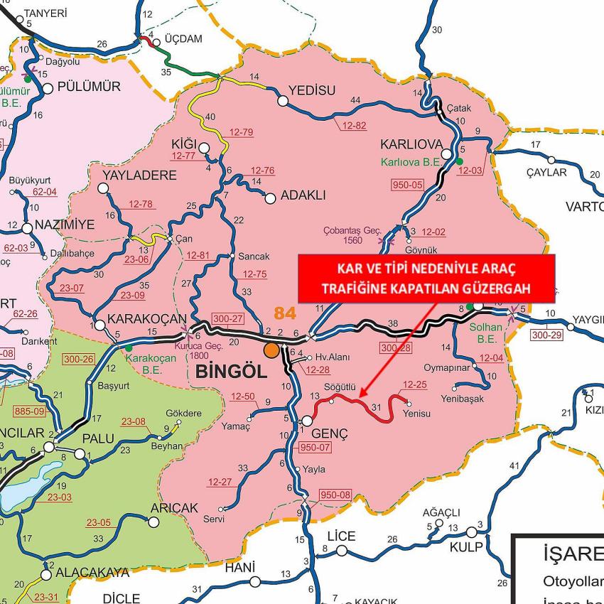 Bingöl ValiliÄŸi'nden yapılan duyuruda, "Bingöl-Erzurum Devlet Yolunun 0-88 km'leri ar...