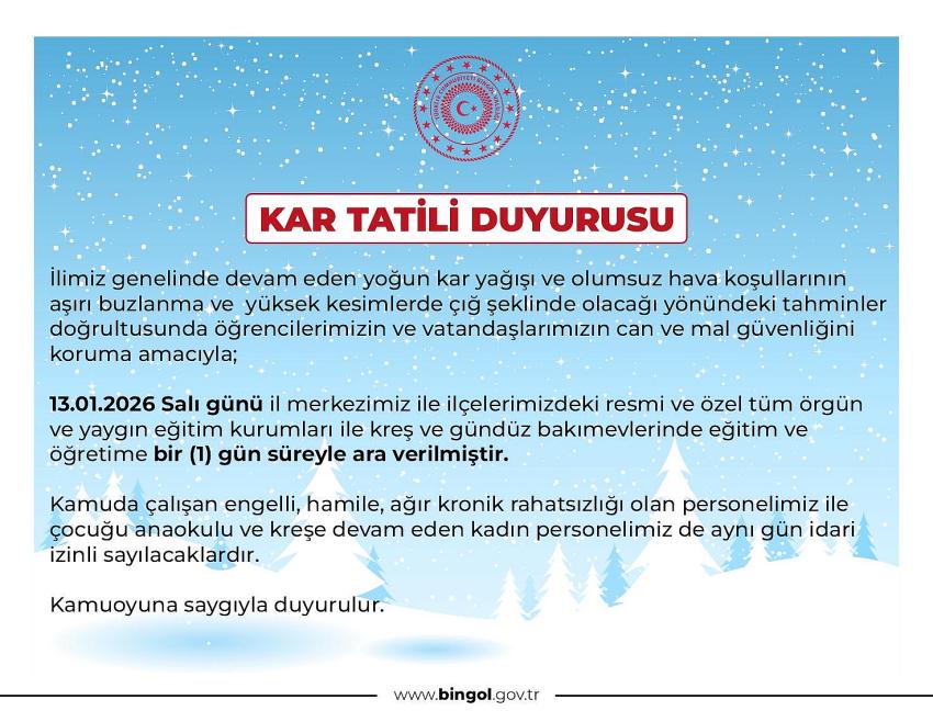 Bingöl ValiliÄŸi Basın ve Halkla İliÅŸkiler MüdürlüÄŸü’nden tatil kararı hak...