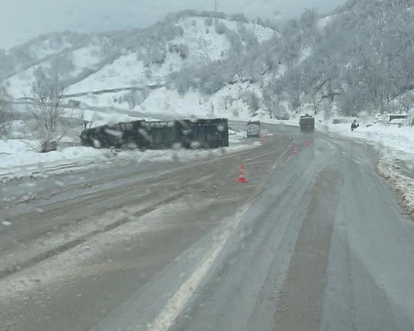 Bingöl-Elazığ karayolunun Kuruca mevkiinde etkili olan kar yağışı nedeniyle çoÄŸu ağır ton...