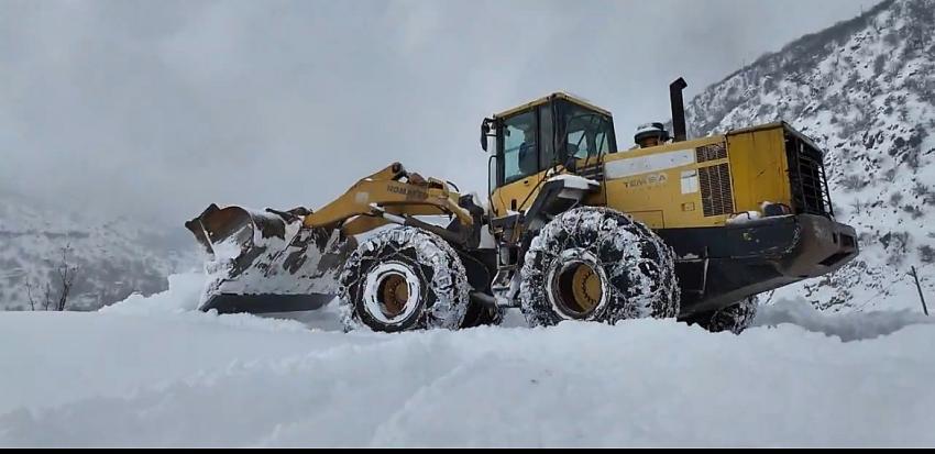 Bingöl'de etkili olan yoÄŸun kar yağışı ve tipi nedeniyle Genç-Yenisu İl Yolund...